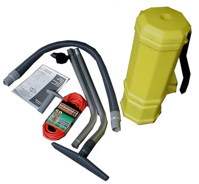 This machine is good for plaster dust and any type of fine powdery substance which tends to clog up the pores in ordinary shop vacs. The machine is designed with two filters and is also capable of picking up water. Container is made of a good quality fiber and has a drain hole on the bottom.